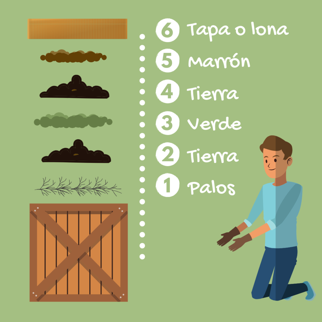 Al tener listo lo ya antes mencionado, se deberá colocar en el recipiente una capa de tierra y después una de desperdicios orgánicos, se repetirá este proceso hasta llenar el recipiente, después se le agregará agua y se tapará.