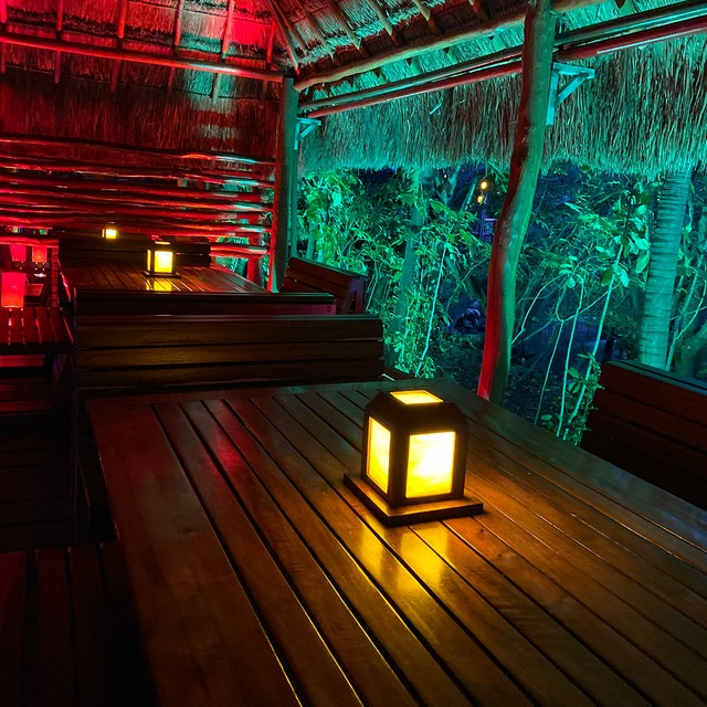 El restaurante cuenta con palapas ambientadas con mesas, salas o camas, el lugar perfecto para una velada mágica en un ambiente relajado al aire libre.